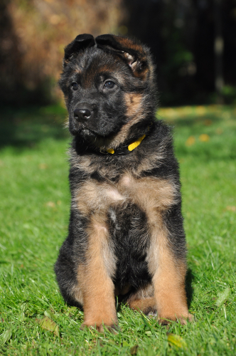 Aktīva, vesela un ļoti azartiska 3 mēnešus veca Vācu aitu suņu meitene gaida